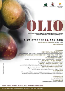 Per approfondire le proprie conoscenze oliandole, il 7/8/9 Ottobre si organizza a Vescia di Foligno, presso il Molino Il Fattore, Olio - Percorso teorico pratico ad orientamento sensoriale sullolio extra vergine doliva.